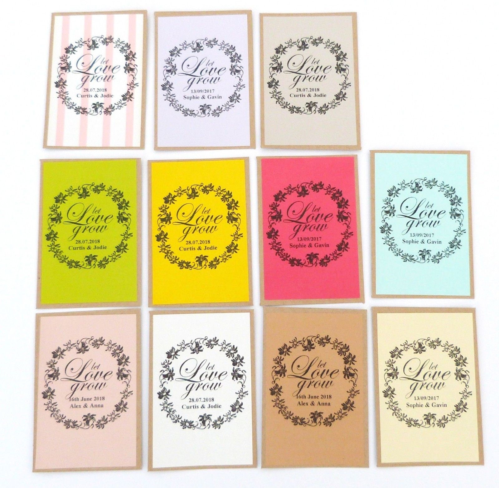 10 x Wedding let love grow personalised seed packets favours table gifts envelopes