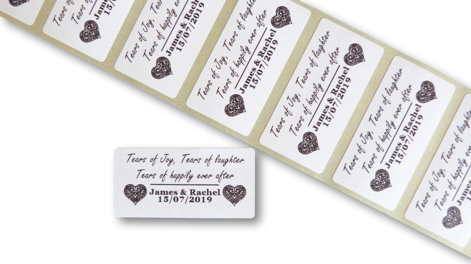 100 PERSONALISED WEDDING TEARS OF JOY, TEARS OF LAUGHTER LABELS