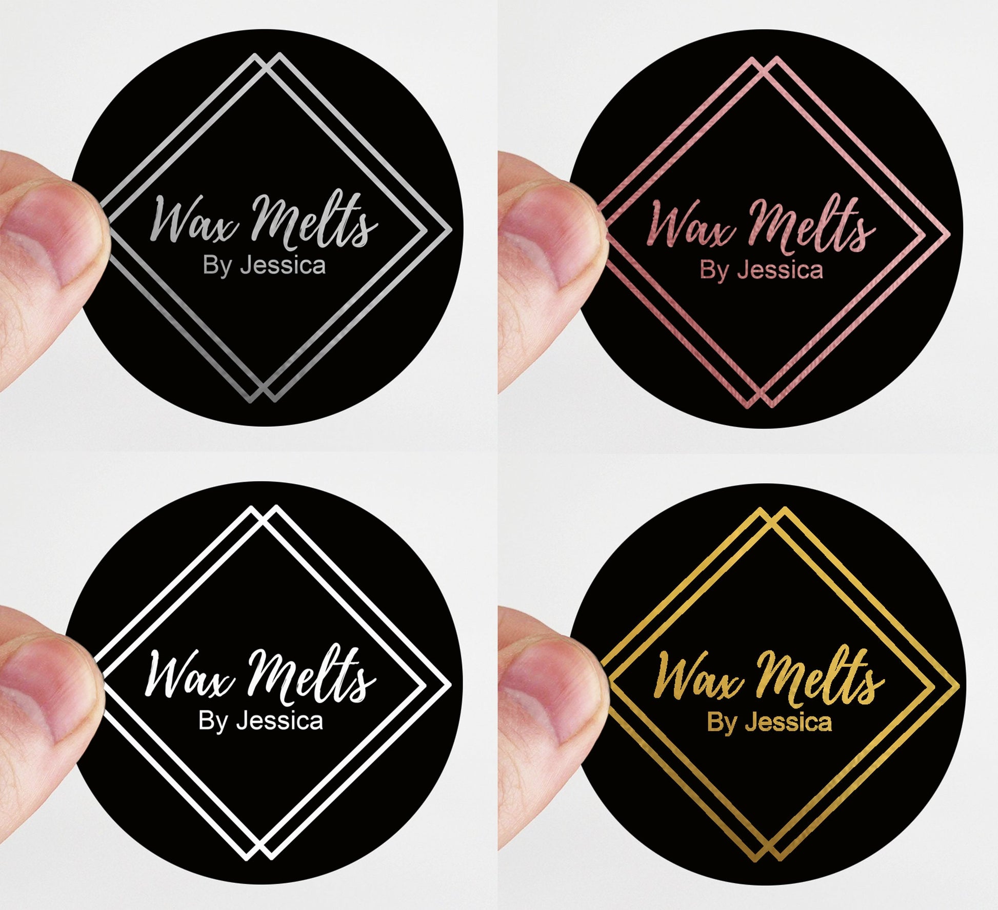 100 x Black personalised metallic foil logo labels business stickers gold silver rose gold shiny