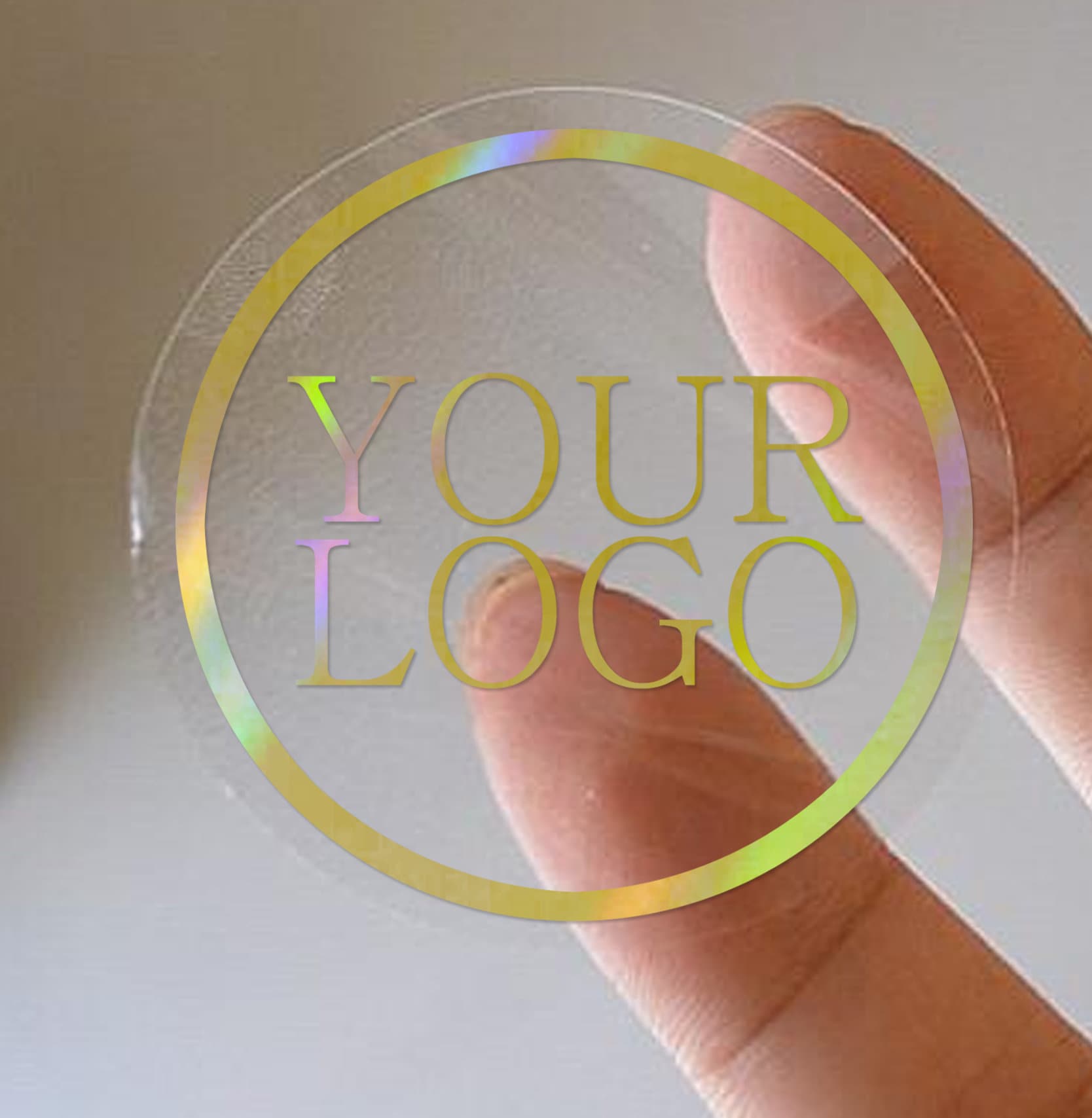 100 x Clear round 45mm 50mm 90mm stickers holographic gold shiny rainbow foil logo transparent labels business stickers