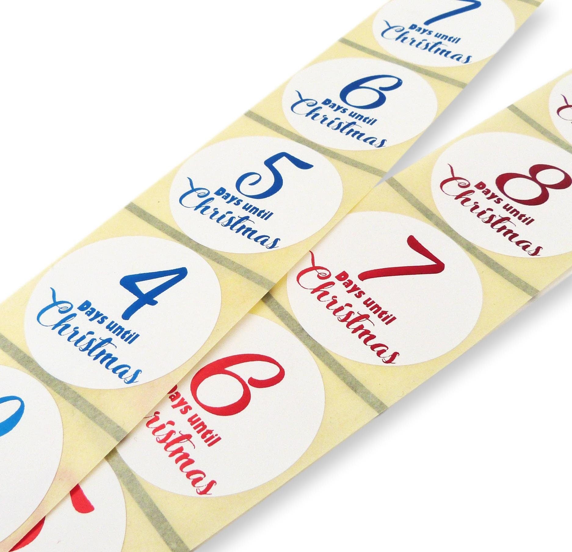 24 X Red Blue foil printed days until Christmas DIY advent calendar stickers metallic labels