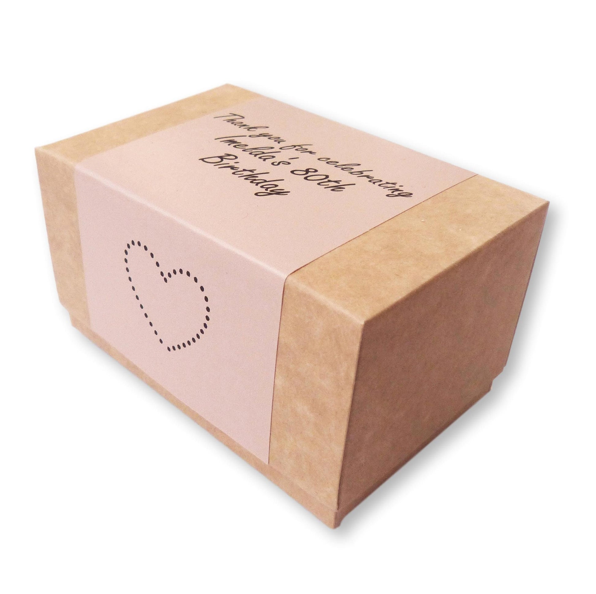 50 X Personalised white cake boxes with personalised coloured label wedding birthday party