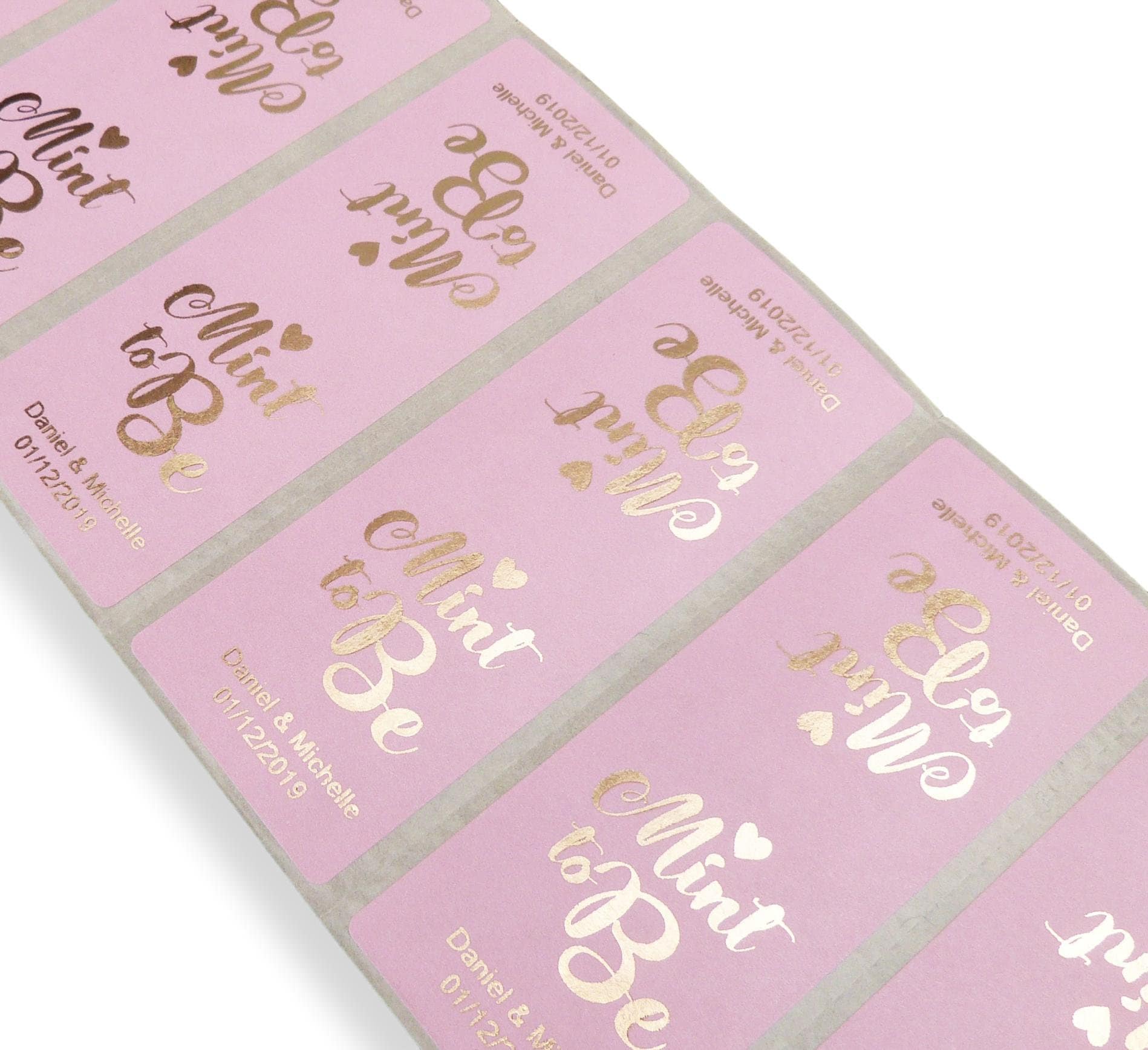 Mint to be personalised pink labels gold foil metallic print stickers Tic tacs wedding favour