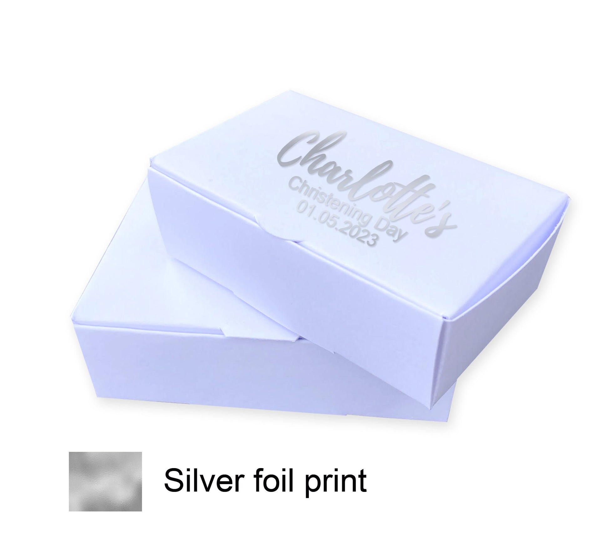 Personalised girls birthday baby shower cake slice favour boxes favor silver foil boxes