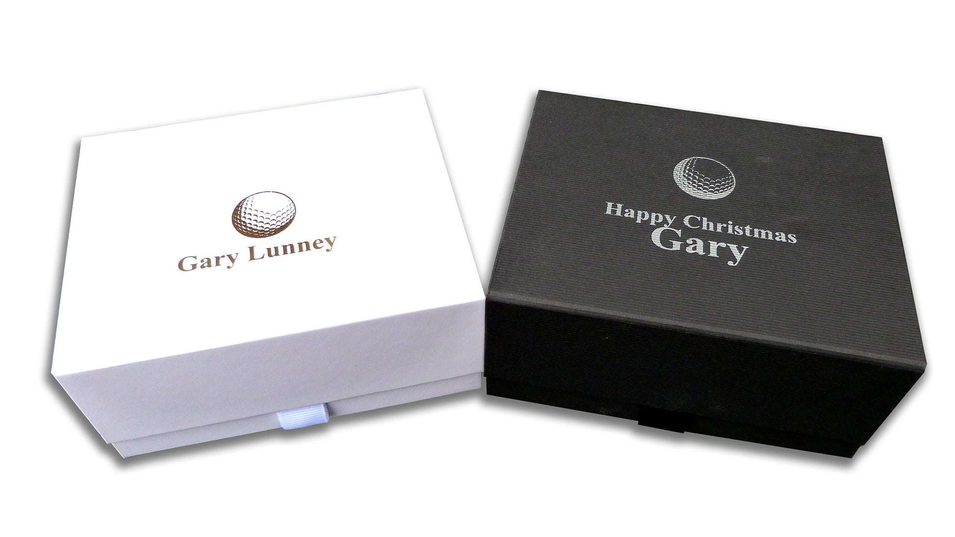 Name/message to be printed on top of the box. Golf ball motif will be printed unless otherwise requested