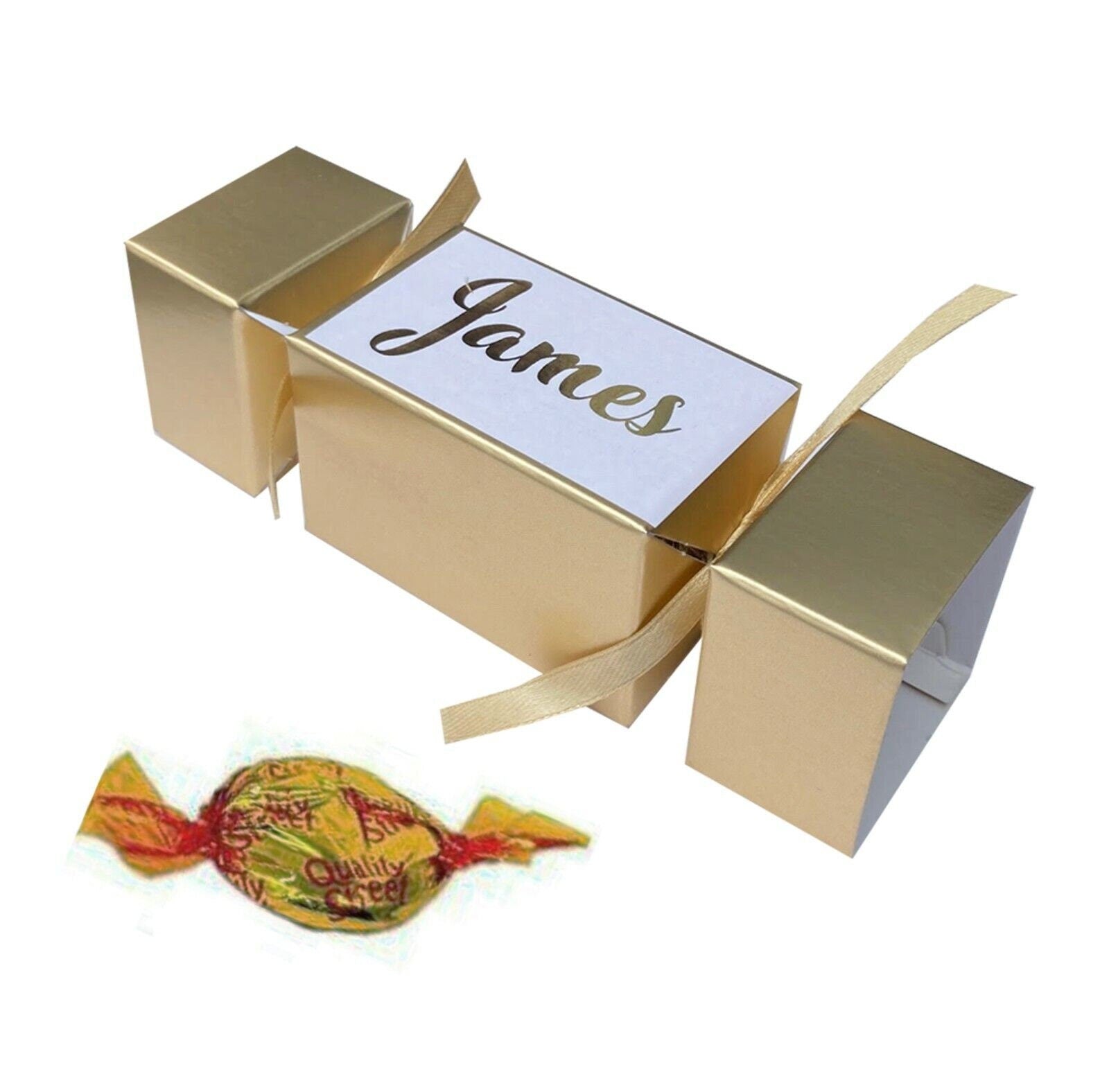 small personalised gold crackers table names favours gift christmas boxes DIY red green blue